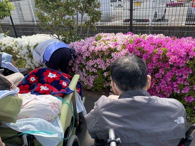 つつじ観賞 2025/05/05 済生会のつつじ観賞 5月5日快晴。施設を飛び出し、隣の済生会病院までつつじを見に行きました。青空の下、少し風はありましたが、陽射しは強く気持ちが良かったです。 色とりどりのつつじ 濃いピンクや薄いピンク、白色のつつじがとても綺麗に咲いていました。 スタッフ日記