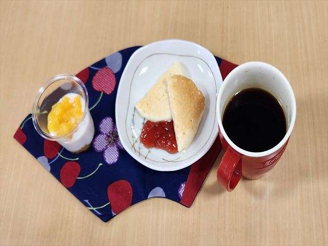 おやつ作り「パンケーキ」 2025/06/03 手作りおやつ 今日は手作りおやつの日として、職員のたてたコーヒーとミルクゼリー&出来立てパンケーキを頂きました。「美味しいね」と皆さん笑顔が見られていました。 出来上がりを楽しみにしています! 少し苦味のあるコーヒーに甘いミルクゼリーとパンケーキがほどよく 皆さんとても美味しそうに召し上がりました。「出来立てはいいね」と好評でした。次は何かな?これからも手作りおやつを楽しみにしています。 スタッフ日記