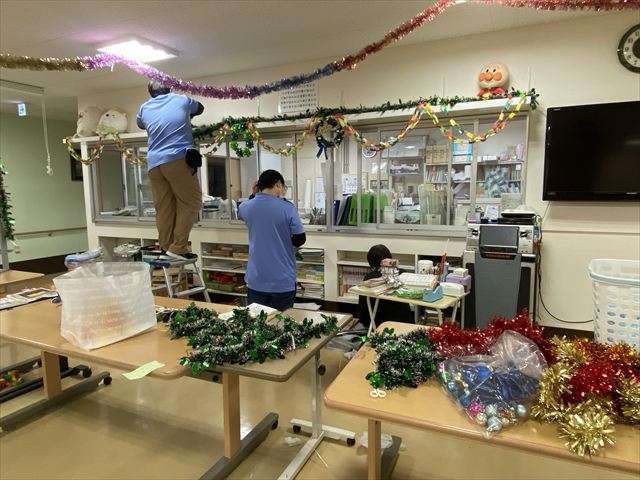クリスマスツリー完成 2025/12/10 クリスマスツリー飾りの完成! レインボー恵アネックスもクリスマスの壁面飾りをしました。手形のツリーが色とりどりの華やかなクリスマスツリーに変身しました。 クリスマス会の飾り付け スタッフ日記