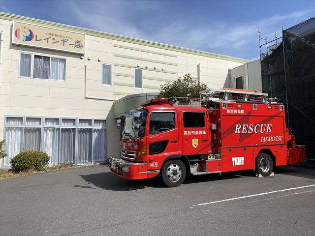 日向ぼっこ&消防点検 2026/02/25 消防車 消防点検の日、外を見ると消防車が停まっている!しばらくすると子どもたちの可愛い声が聞こえてきました。なかなか施設に来ることないので、皆さんは窓越しに見学しました。青空に赤い消防車が映えてかっこいいですね。「街の安全点検ありがとうございます!」 日向ぼっこ とても暖かい午後。レインボー恵の玄関先のピロティホールで、日向ぼっこをしました。 「春の陽気やな~」「気持ちええわ」としばらく外の景色を眺めていました。 スタッフ日記