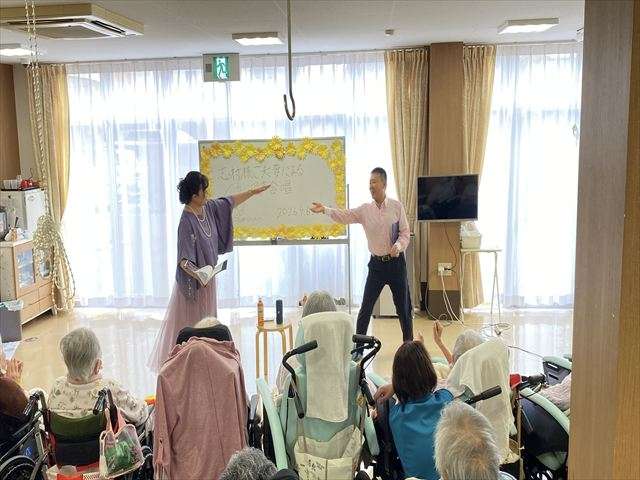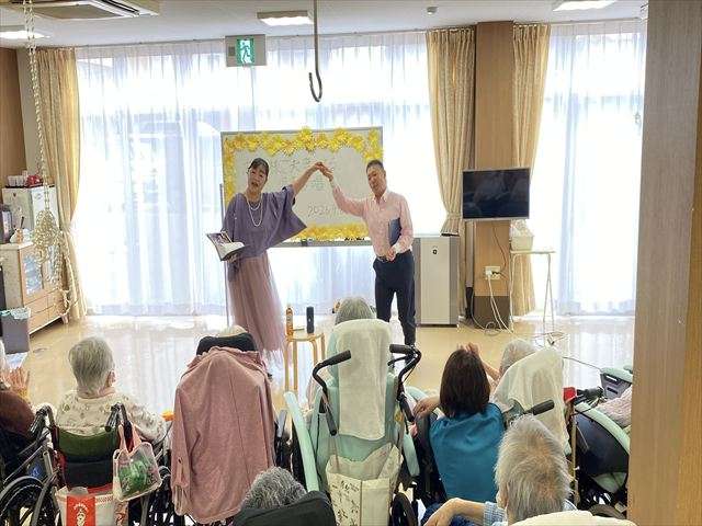 混声合唱~日本の四季ふるさと~ 2026/04/09 志村様ご夫妻による混声合唱~東京混声合唱団~ 春の良き日に、志村夫妻による混声合唱~日本の四季ふるさと~を開催しました。 春夏秋冬 とても伸びやかな歌声が、利用者様はもちろん、職員もうっとり聞きほれ、時間を忘れるひとときになりました。温かい歌声をありがとうございました。 スタッフ日記