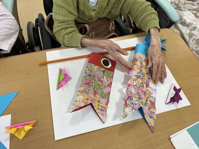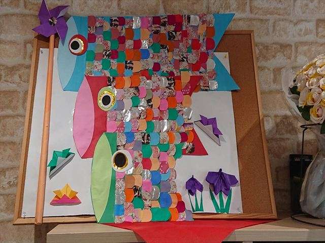 5月壁面飾り~こいのぼり~ 2026/04/22 鯉のぼり&つつじ 5月が近付き、壁面に鯉のぼりを作り飾りました。 レインボー恵の玄関横や中庭に咲いている鮮やかなつつじも飾り、華やかになっています。是非、お越しの際はご覧ください。 アネックスの鯉のぼり アネックスの玄関にも特大鯉のぼりを作成しました。是非、お越しの際はご覧ください。 五月の連休まで、元気に泳いでいます。 鯉のぼり作り 皆さんで協力して鯉のぼりを作りました。 スタッフ日記